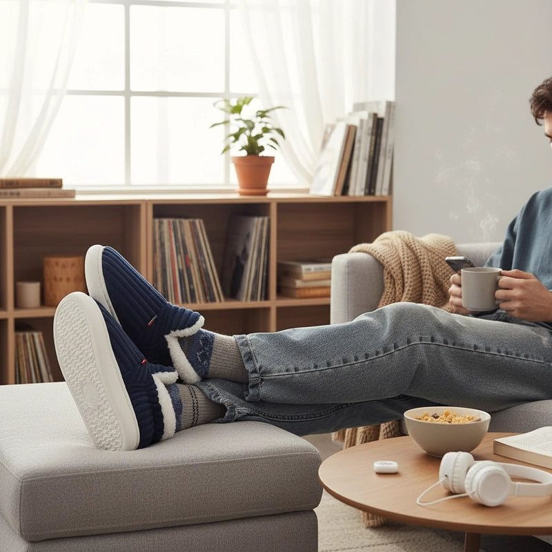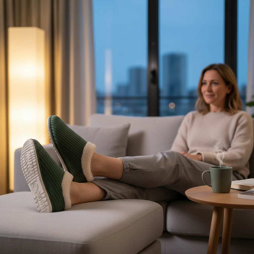 Imaginez: vous enlevez vos chaussures et glissez vos pieds dans un nuage de douceur. Les Cozymoon sont votre rituel de fin de journée, la promesse d'une détente immédiate pour recharger vos batteries.