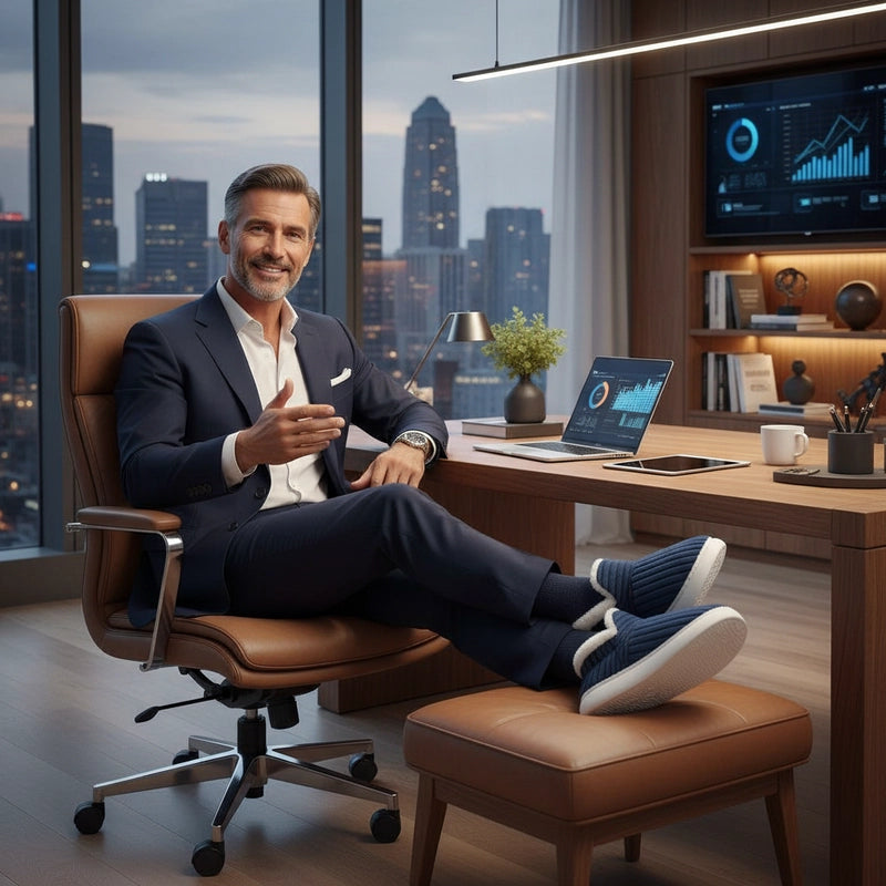Après une journée chargée, vos pieds méritent le luxe. Glissez-vous dans Pluffi: un nuage de douceur stylé. Oubliez le stress, ressentez le confort immédiat. Votre récompense quotidienne.